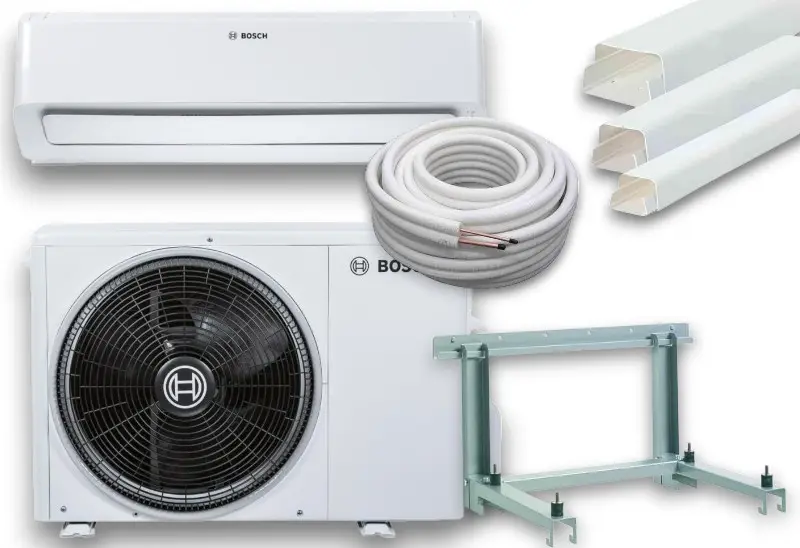 Markstativ eller specialanpassad montering av utomhusenheten ingår inte heller i standardinstallationen. Om utomhusenheten inte kan monteras på väggen med den medföljande konsolen, kan ett markstativ eller en annan speciallösning behövas, vilket innebär en extra kostnad. Likaså ingår inte längre rördragning än fem meter. Om avståndet mellan inne- och utomhusdel överstiger detta, tillkommer kostnader för extra rör, isolering och kabelkanaler.